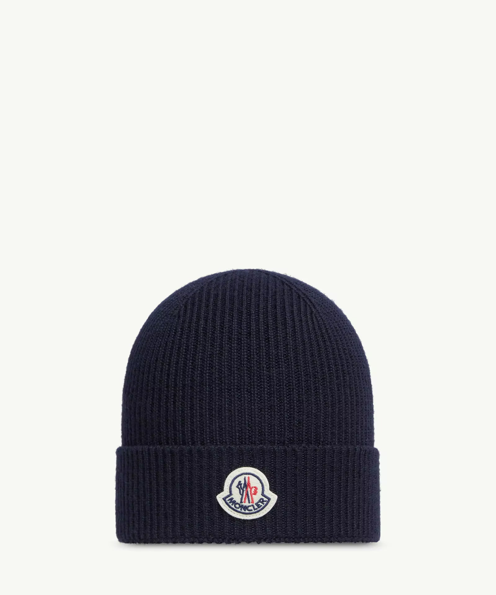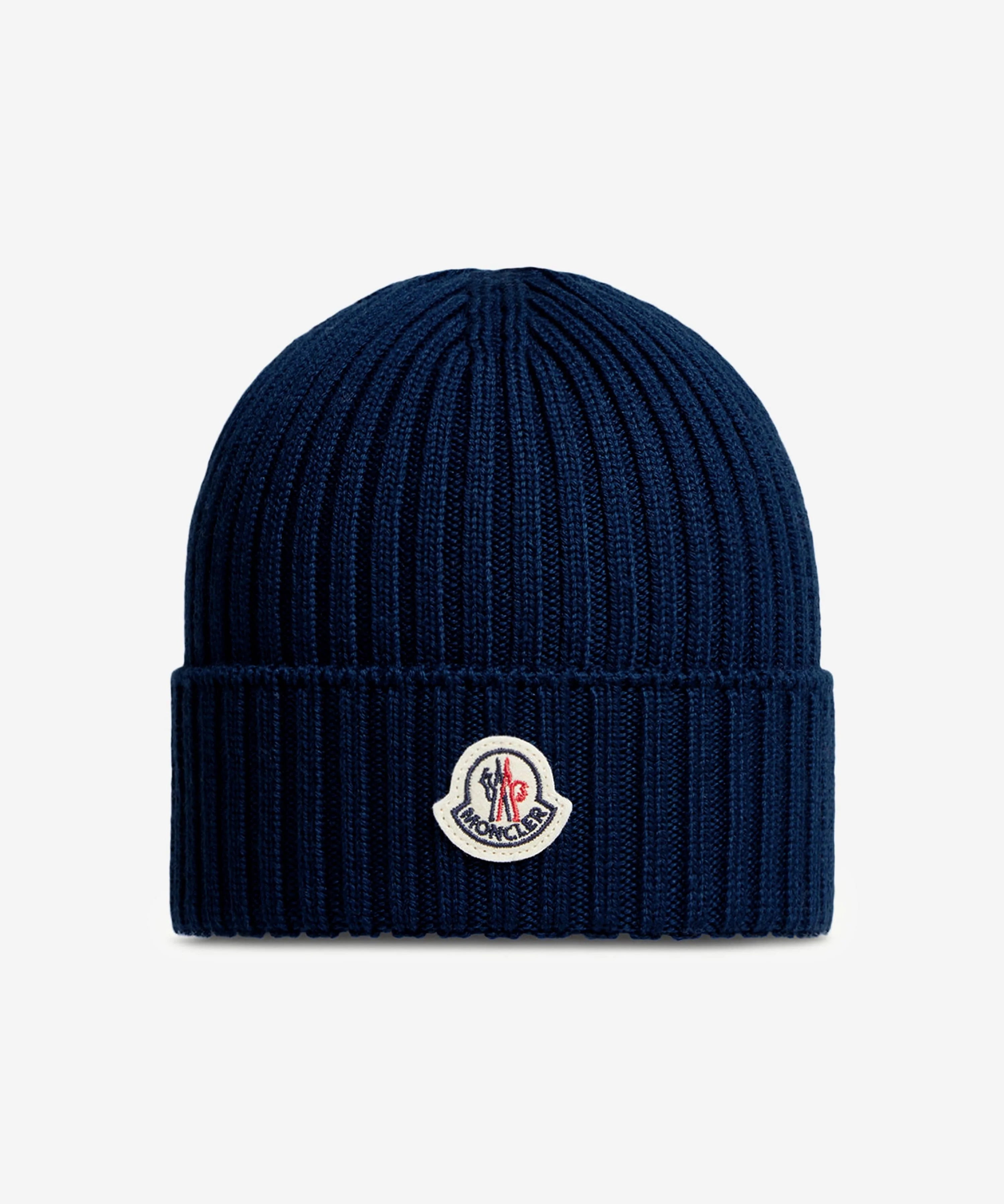 MONCLER NAVY WOOL KNIT BEANIE HAT